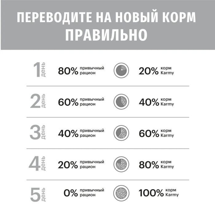 Корм Karmy полнорационный малозерновой корм из натуральных ингредиентов, поддерживает здоровое пищеварение и сильный иммунитет вашего питомца. Обеспечивает полноценное и точно сбалансированное питание для здоровья и активности вашего животного.