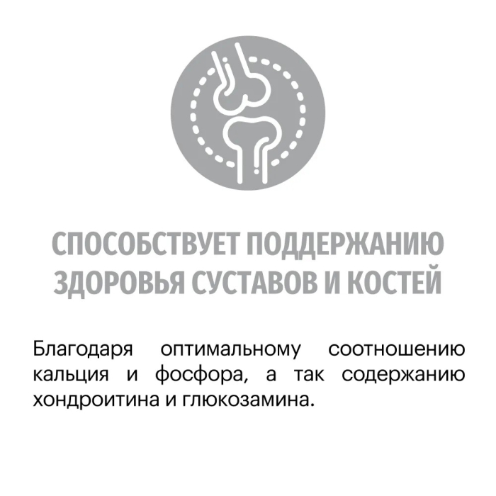 У кошек крупных пород, подверженных высоким нагрузкам, благодаря оптимальному соотношению кальция и фосфора, а также содержанию хондроитина и глюкозамина .