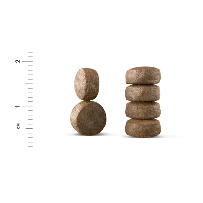 Дегидрированное мясо индейки- 43%, бурый цельный рис, белый цельный рис, дегидрированное мясо лосося, жир лососевый (естественный источник омега-3 и омега-6), пивные дрожжи (источник маннанолигосахаридов), сушеное яблоко, свежий шпинат, цельная клюква, витаминно-минеральный комплекс, Юкка Шидигера, пробиотики (Bacillus subtilis, Bacillus licheniformis), глюкозамин (600 мг/кг), хондроитин (100 мг/кг), сохранено витамином С и смесью природных токоферолов (источники натурального витамина Е).