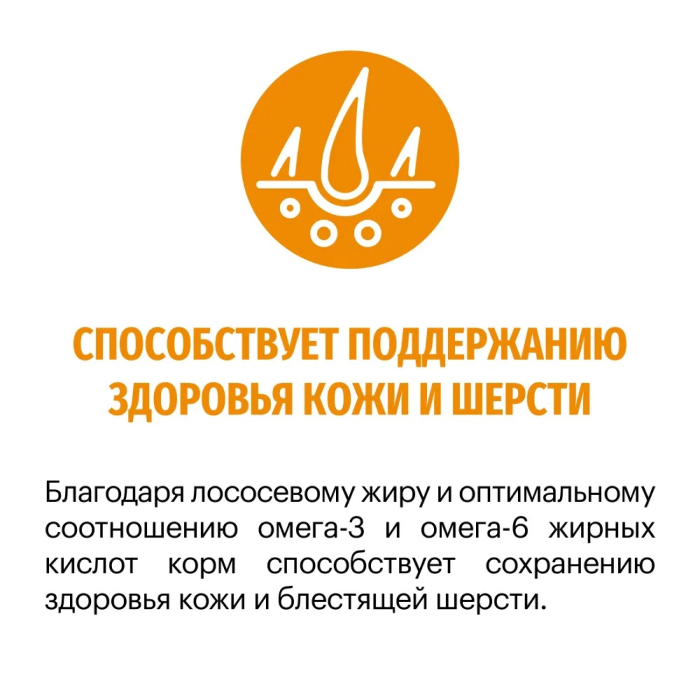 Способствует сохранению здоровья кожи и шерсти, благодаря оптимальному соотношению омега-3 и омега-6 жирных кислот;