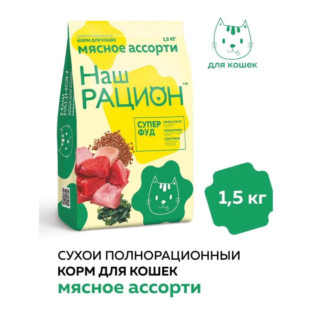 Наш Рацион корм сухой для кошек Мясное ассорти.