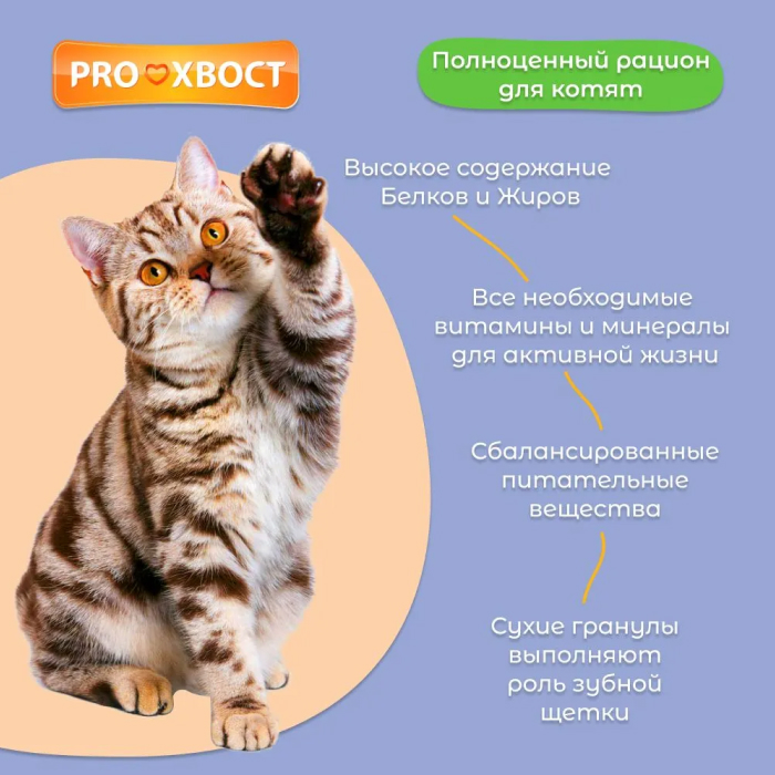 Рацион Прохвост гораздо полезнее еды со стола человека. Сочетание вкуса и пользы достигается благодаря высокому содержанию белков (30%) и жиров (10%). Питательные вещества в корме сбалансированы под потребности организма кошек. В рецепт входит таурин, который нужен для острого зрения и работы сердца.