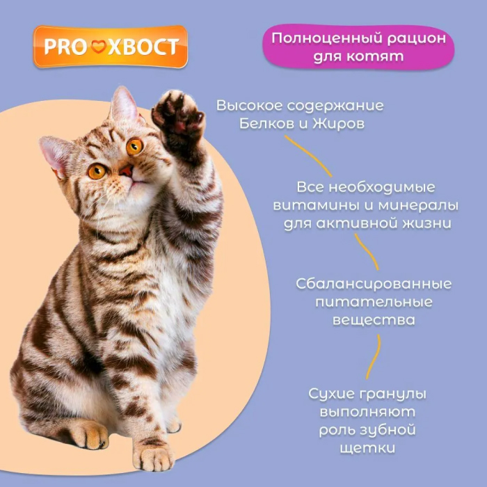 Зная о проблеме выбора недорогой и питательной еды для кошек, ветеринары из Дании разработали рацион Proхвост (Прохвост). В него вошли понятные и доступные продукты, такие как мясо, злаки и овощи. В готовом корме для кошек соблюден баланс питательных веществ, витаминов и минералов. Это одно из главных отличий еды со стола человека, которая, с точки зрения содержания белков, жиров и углеводов, для кошек является абсолютно несбалансированной.
