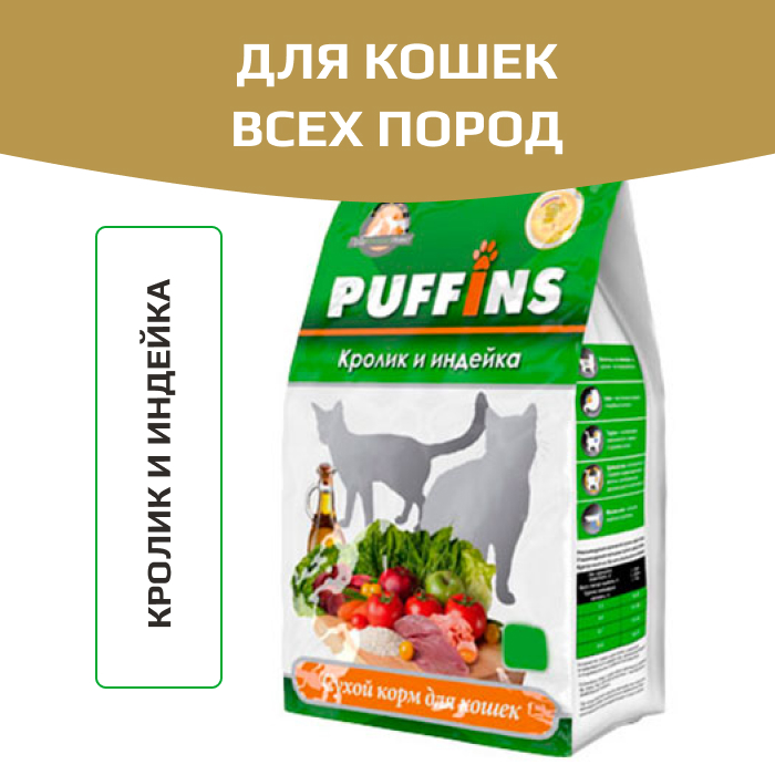 Puffins корм сухой для кошек с кроликом и индейкой.