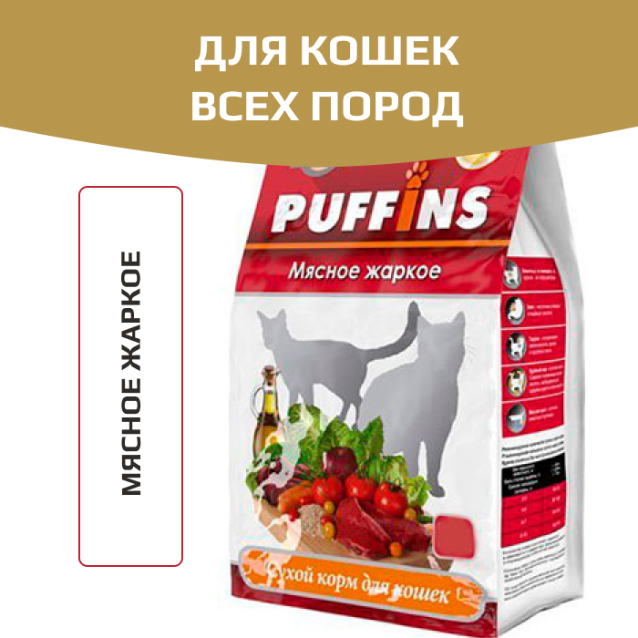 Puffins корм сухой для кошек с мясом.