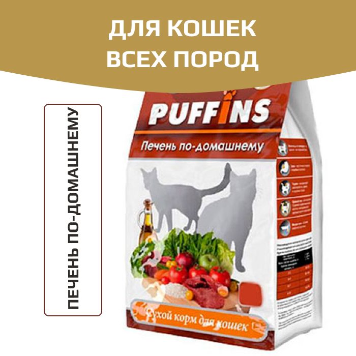 Puffins корм сухой для кошек с печенью.