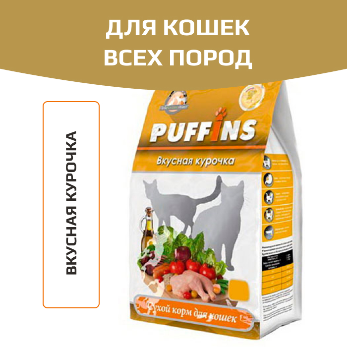 Puffins корм сухой для кошек с курицей.