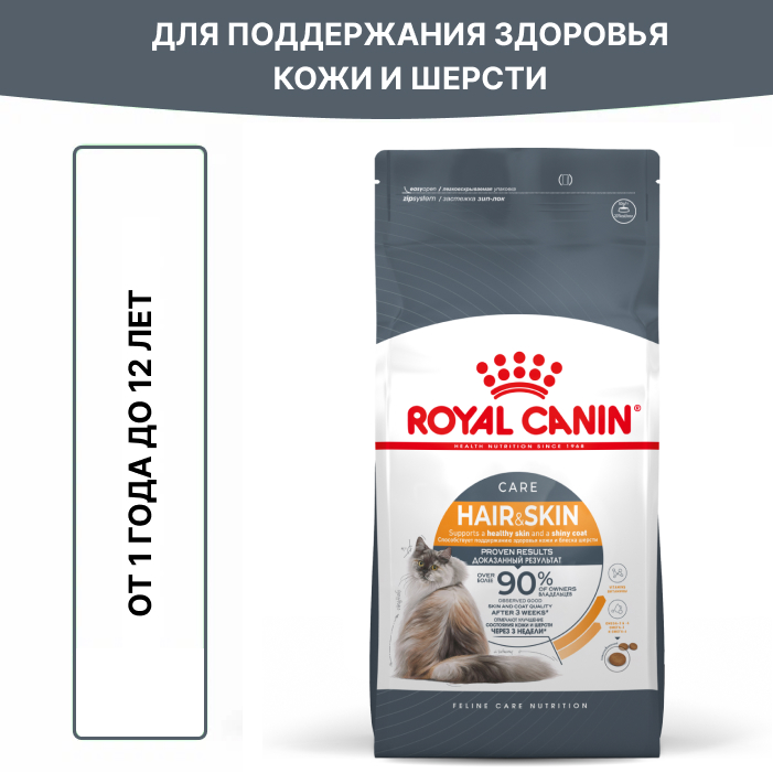 Royal Canin Hair & Skin Care - Корм для взрослых кошек в целях поддержания здоровья кожи и шерсти.