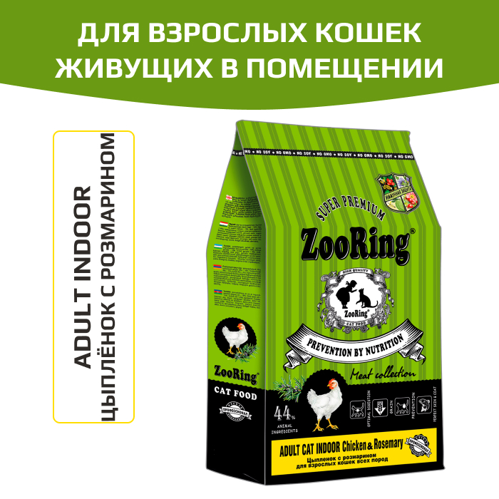 ZooRing ADULT CAT INDOOR CHICKEN&ROSEMARY полнорационный сухой корм для взрослых кошек всех пород цыплёнок с розмарином.