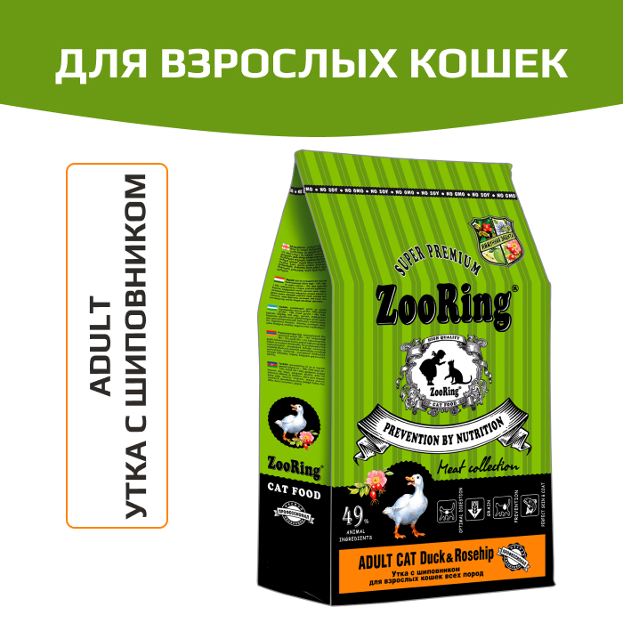 ZooRing ADULT CAT DUCK&Rosehip корм сухой для взрослых кошек утка с шиповником.
