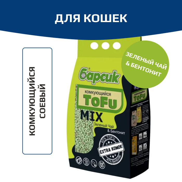Барсик Tofu MIX Зеленый Чай & Бентонит комкующийся наполнитель для кошек.
