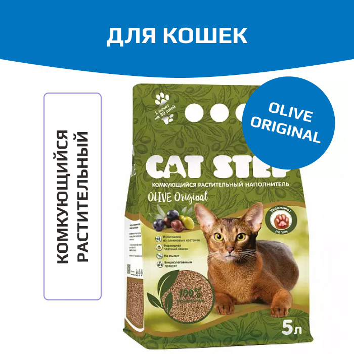 Cat Step Olive Original наполнитель для кошек комкующийся растительный.
