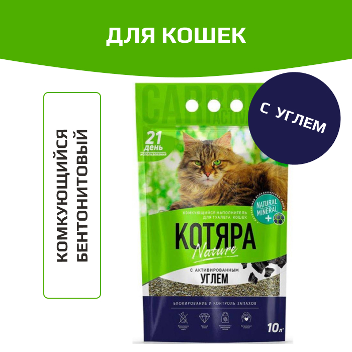 Котяра Nature комкующийся с активированным углем наполнитель для кошачьего туалета.