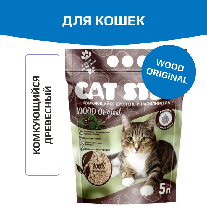 Cat Step Wood Original растительный комкующийся наполнитель для кошачьего туалета.