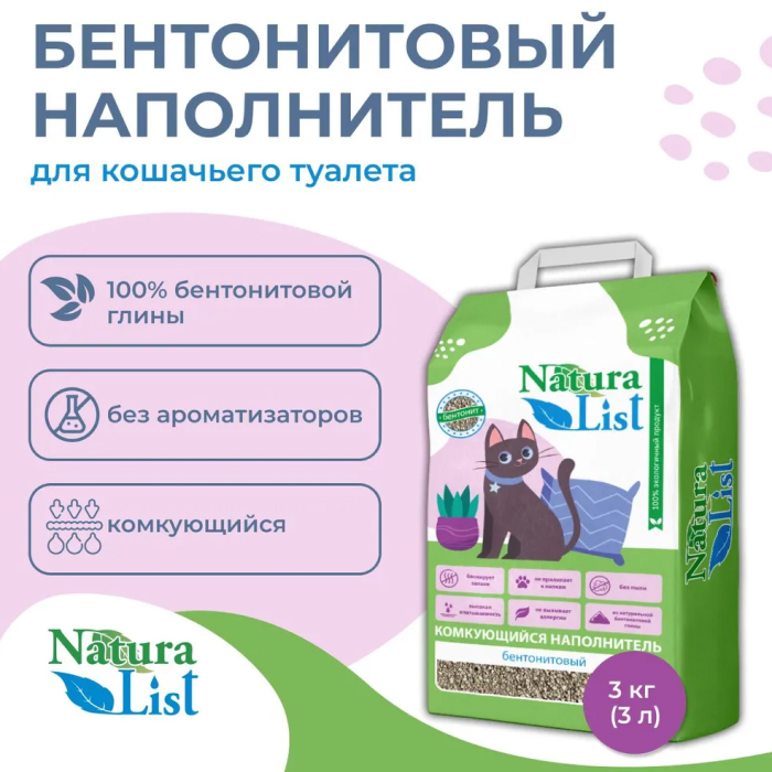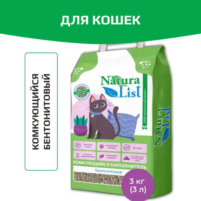 NaturaList комкующийся бентонитовый наполнитель для кошачьего туалета.