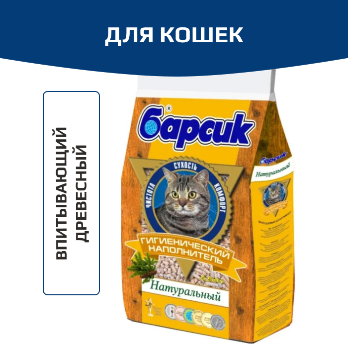 Гигиенический наполнитель Барсик «Натуральный» – древесный наполнитель, изготовленный из еловой и сосновой древесины, обработанной и спрессованной по уникальной технологии. Основные свойства наполнителя Барсик «Натуральный»: 100% чистая древесина, качественная обработка – плотная структура гранул, суперэкономичен и удобен в использовании, обладает высокой впитываемостью, надежно удерживает неприятные запахи, не прилипает к лапкам животных, не пылит и обладает легким ароматом хвои.