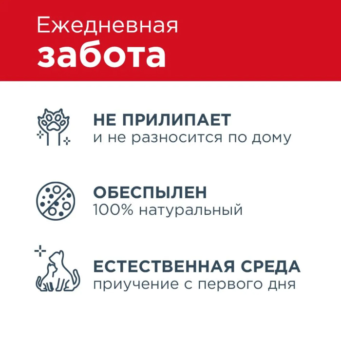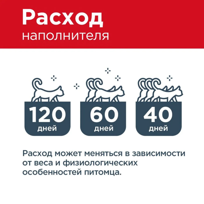 Мы рекомендуем использовать лоток с высокими бортиками или лоток-домик. Слой наполнителя в лотке должен бытьне менее 5 см Регулярно удаляйте комочки и твердые отходы наполнителя. Досыпайте наполнитель до требуемого уровня Периодически (1 раз/мес) производите дезинфекцию лотка Запрещается выбрасывать наполнитель и отходы в канализацию!