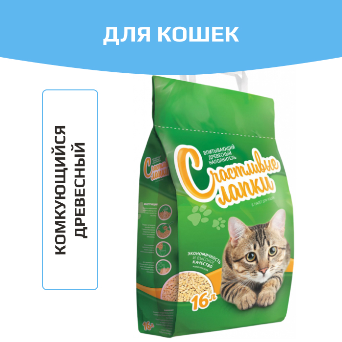Счастливые Лапки Древесный наполнитель для кошачьего туалета.