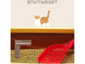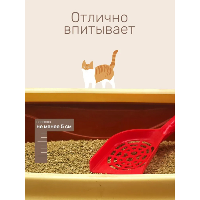 Насыпать наполнитель в чистый сухой лоток. В дальнейшем, образующиеся комочки при впитывании влаги очень удобно убирать специальным совочком. При этом не забывайте подсыпать в лоток немного чистого наполнителя.