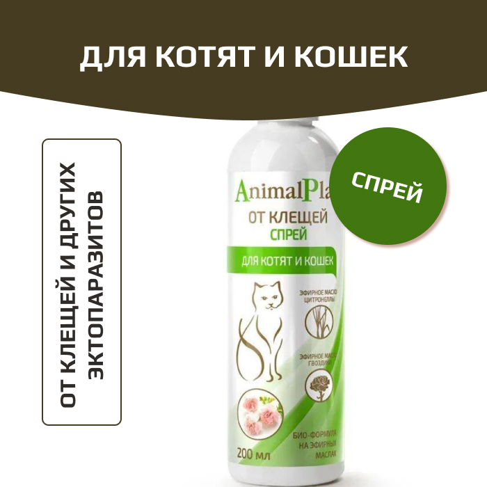 AnimalPlay спрей репеллентный от клещей и других эктопаразитов для котят и кошек, 200мл.