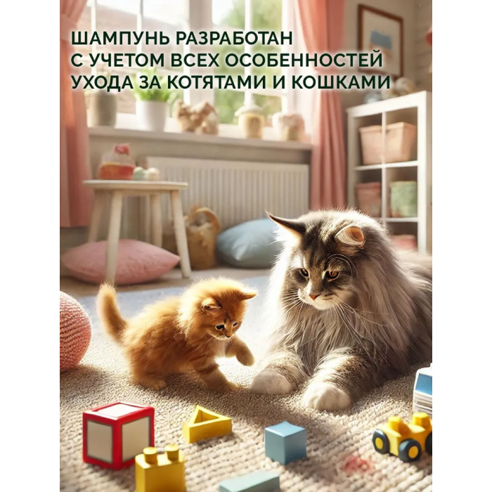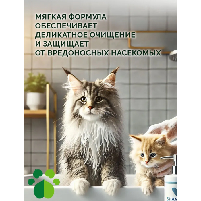 Рекомендации по использованию: Перед обработкой кожно-волосяной покров кошки смачивают теплой водой (27-30 С), а затем наносят шампунь из расчета 1 мл на 1 кг массы животного. Равномерно распределяют по всей поверхности тела, слегка втирают до образования обильной пены. Избегайте попадания состава на слизистые оболочки! Через 4-5 минут шампунь смывают теплой водой, шерсть расчесывают и высушивают. После завершения процедуры следует вымыть лицо и руки водой с мылом.
