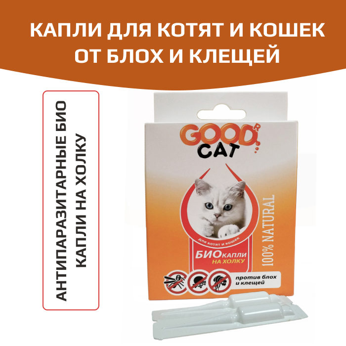 GOOD Cat Антипаразитарные БИО капли для котят и кошек от блох и клещей.