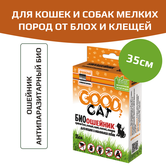 GOOD Cat Антипаразитарный БИО ошейник для кошек и маленьких собак от блох и клещей, 35см.