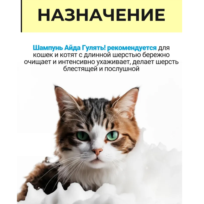 Айда гулять шампунь для длинношерстных кошек и котят.
