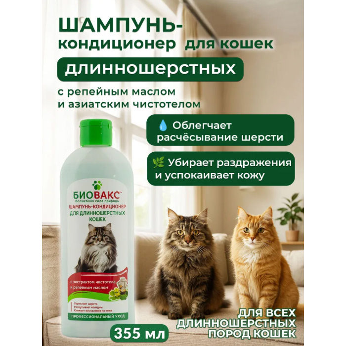 БиоВакс шампунь для длинношерстных кошек, 355мл.