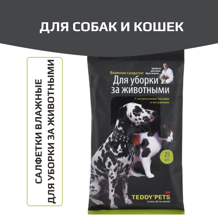 Teddy Pets влажные салфетки для уборки за животными.