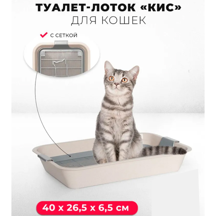 Пластиковый лоток для кошек с сеткой "КИС" от российского производителя товаров для животных Zooexpress.