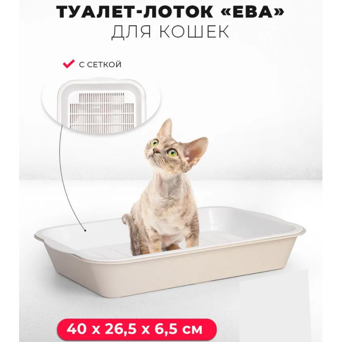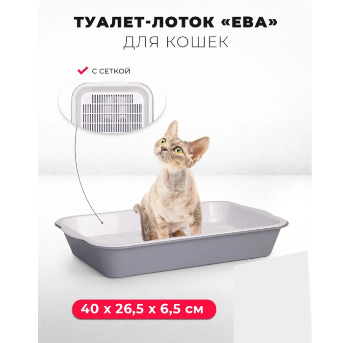 Туалет Ева для кошек с сеткой высокие ножки 40x26,5x6,5см.