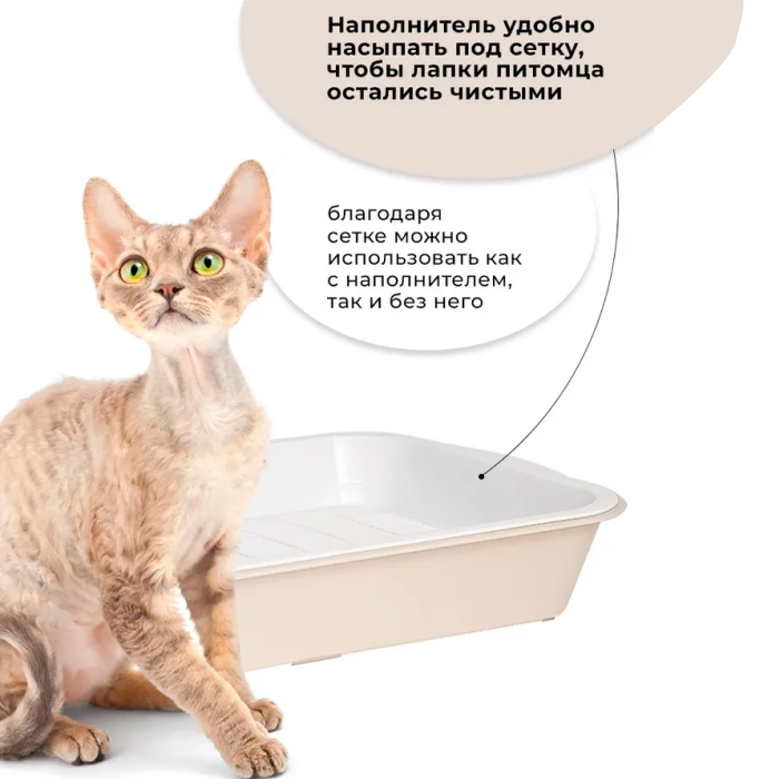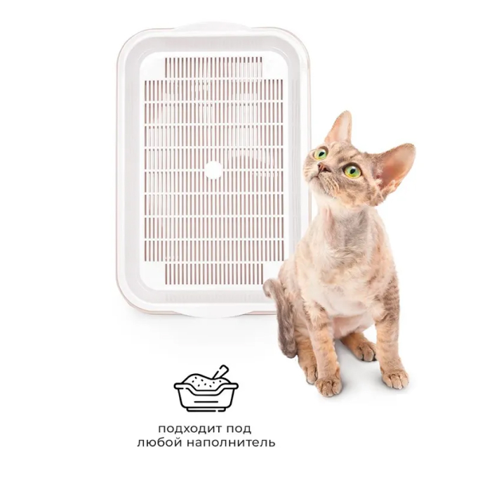 Преимущество лотка – сетка, которая защищает наполнитель от копания и игр пушистого друга после справления своих нужд.
