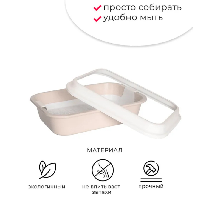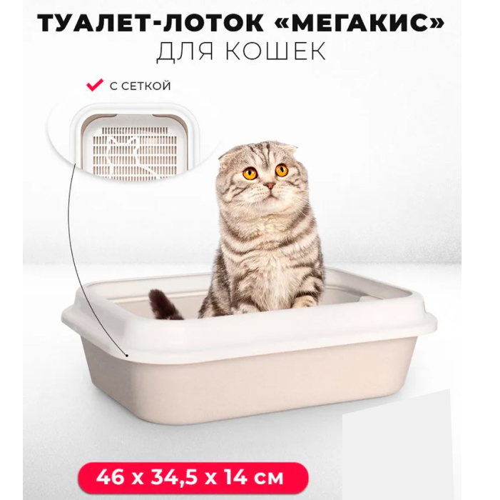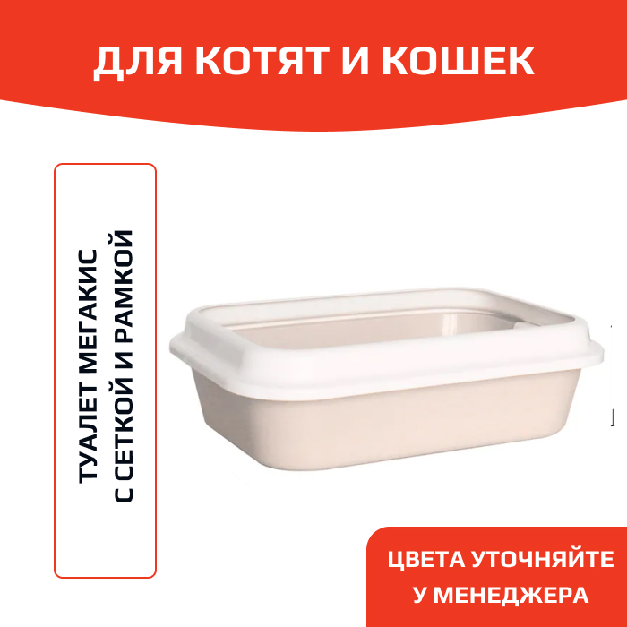 Пластиковый лоток для кошек с рамкой "МЕГАКИС" от российского производителя товаров для животных Zooexpress. Лоток открытого типа со съемной рамкой и сеткой.