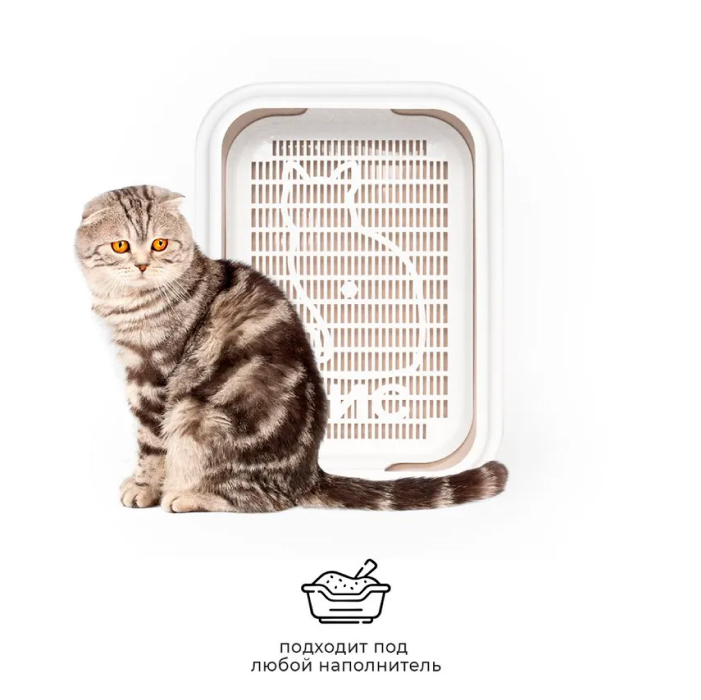 Наполнитель удобно засыпать под сетку, таким образом, лапы у животного будут оставаться чистыми.