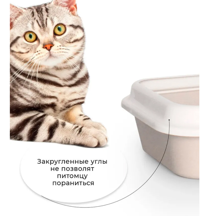 Благодаря высокому борту, наполнитель не разбрасывается по комнате, а остаётся в лотке.