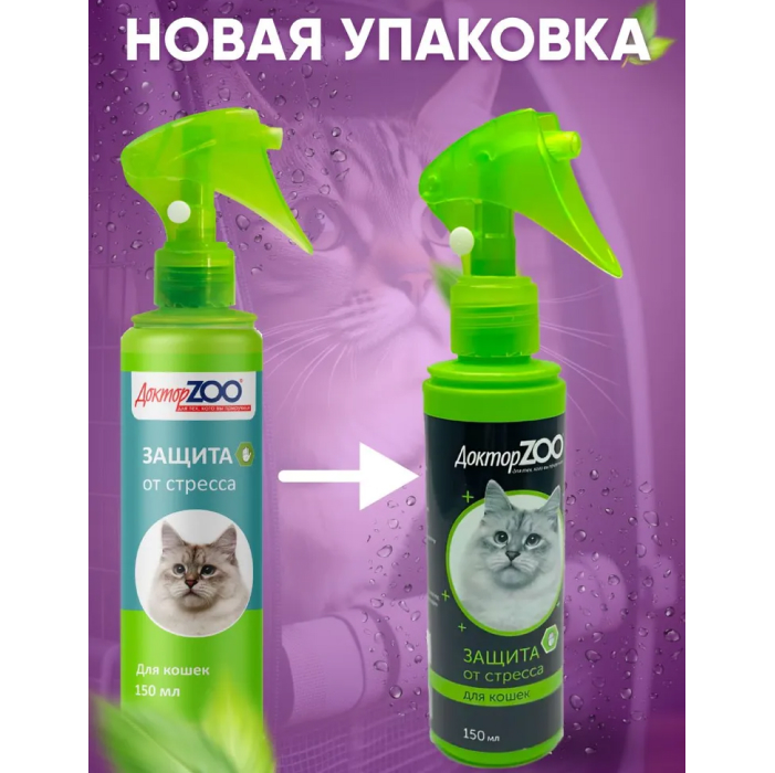 Тревожное состояние кошки во время стрессовых ситуаций: неприятные запахи, громкие звуки, переезд в транспорте или участие в выставках может быть причиной нервных срывов. Необходимо внимательно наблюдать за поведением кошки/котенка и сразу же реагировать на его изменения правильным образом. Создать позитивное и дружелюбное настроение в поездке или дома, во время посещения гостями, дать возможность кошке чувствовать себя "в своей тарелке", поможет успокаивающий спрей-корректор Доктор ZOO.