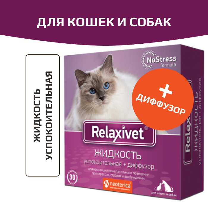 Используйте Relaxivet кошкам и собакам для коррекции поведения, при стрессе, фобиях и возбуждении.