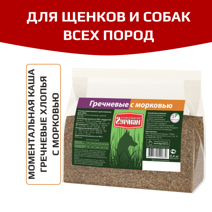 Четвероногий Гурман гречневые хлопья с морковью для собак.