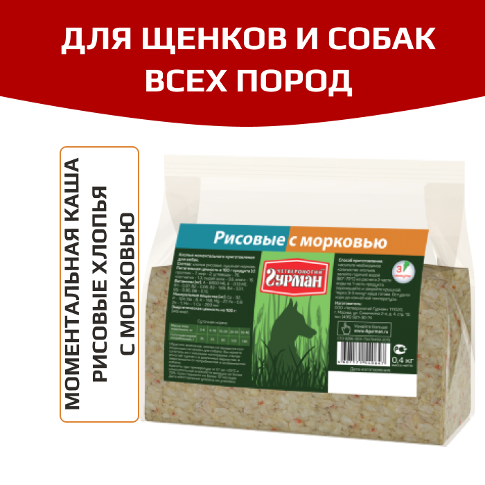 Четвероногий Гурман рисовые хлопья с морковью для собак.