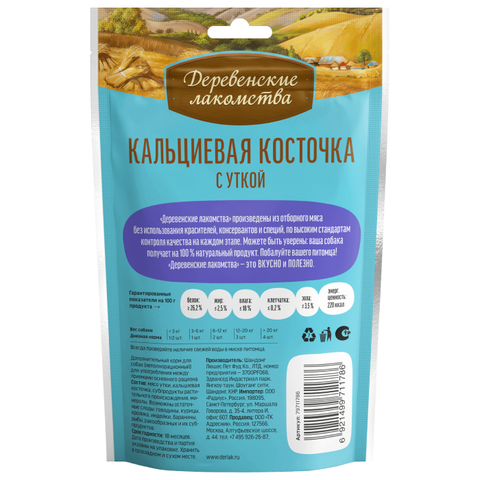 Деревенские лакомства традиционные для щенков кальциевая косточка с уткой.