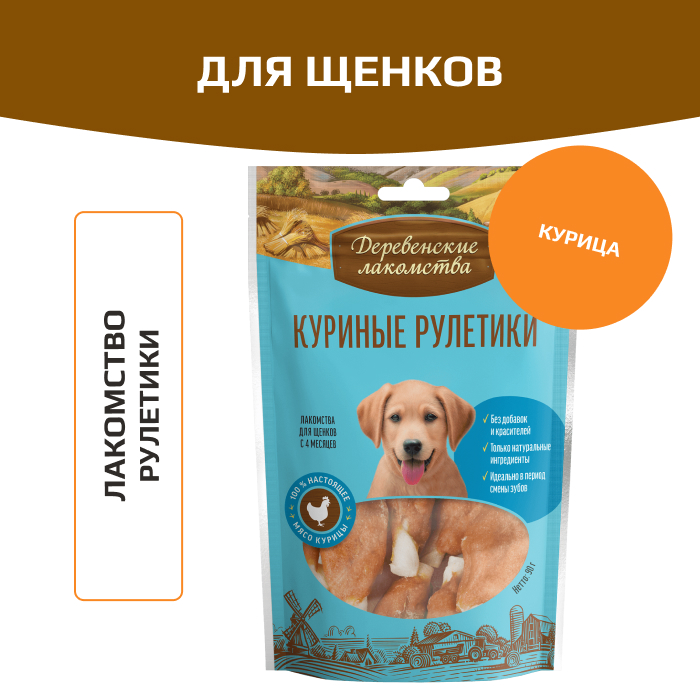 Деревенские лакомства традиционные для щенков куриные рулетики.