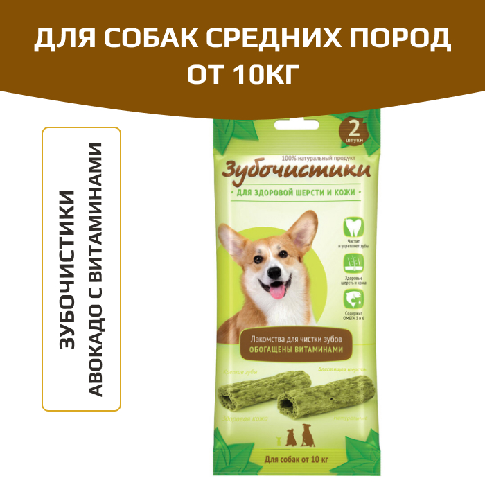 Лакомство Зубочистики "Авокадо" - это мультифункциональные лакомства для собак средних пород, обладающие полезными для здоровья свойствами. Эти жевательные лакомства останавливают развитие кариеса и воспаления десен, отбеливают зубы и освежают дыхание. Благодаря своей пористой структуре лакомства прекрасно чистят зубы. В состав добавлен рыбий жир, а значит они содержат необходимые для здоровья кожи и шерсти Омега 3 и 6 жирные кислоты. Зубочистики "Авокадо" богаты витаминами A, B, E и минералами, что делает их вкусным и полезным угощением.