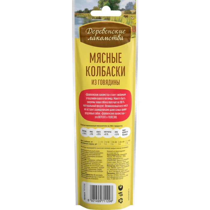 Колбаски из свежайшей говядины легко ломаются на маленькие кусочки и подойдут для угощения собак всех пород. Лакомство для взрослых собак средних и крупных пород.