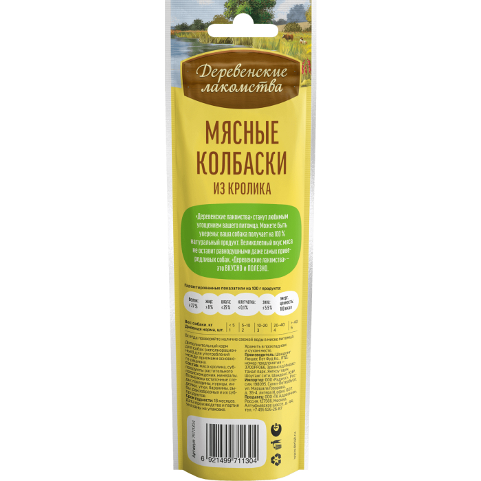 Диетические колбаски из нежнейшей крольчатины обладают тонким, изысканным вкусом и к тому же легко усваиваются. Лакомство для взрослых собак средних и крупных пород.
