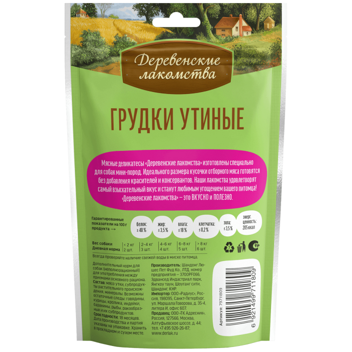 Деревенские лакомства утиные грудки для собак мини-пород.