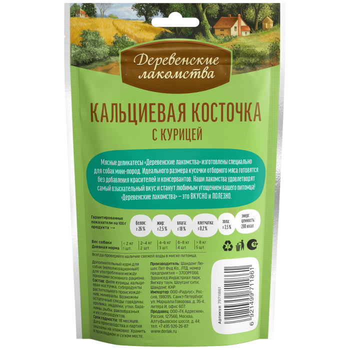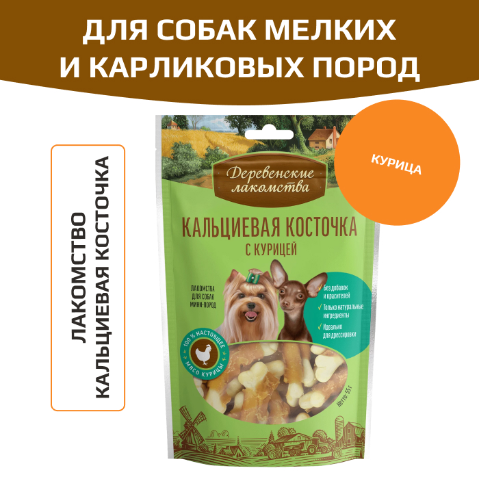 Деревенские лакомства кальциевая косточка с курицей для собак мини-пород.