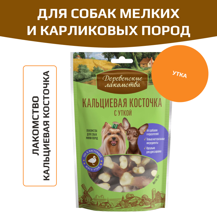 Деревенские лакомства кальциевая косточка с с уткой для собак мини-пород.