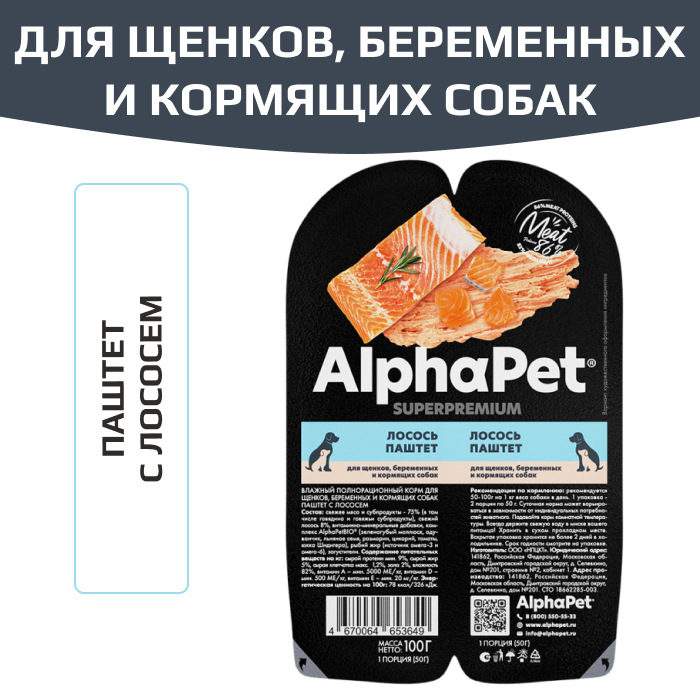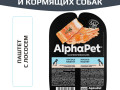 AlphaPet Superpremium влажный полнорационный корм для щенков, беременных и кормящих собак паштет с лососем.