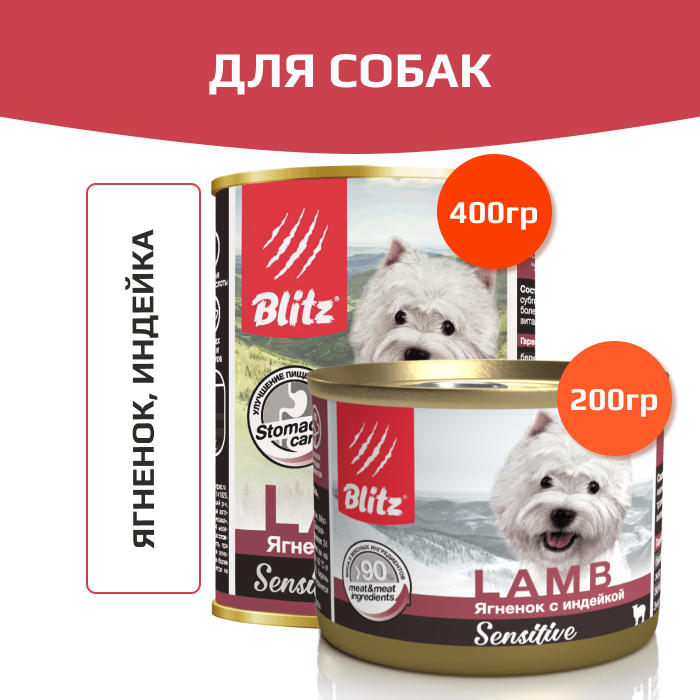 Blitz Sensitive Dog Lamb & Turkey (Pate) корм консервированный для собак всех пород и возрастов с ягненком и индейкой.